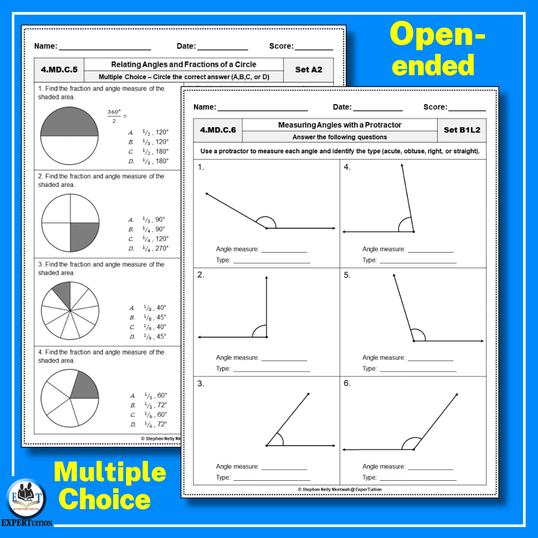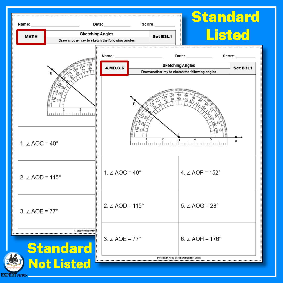 ☑️ Worksheets with 4.MD.C.(5,6,7) standards listed