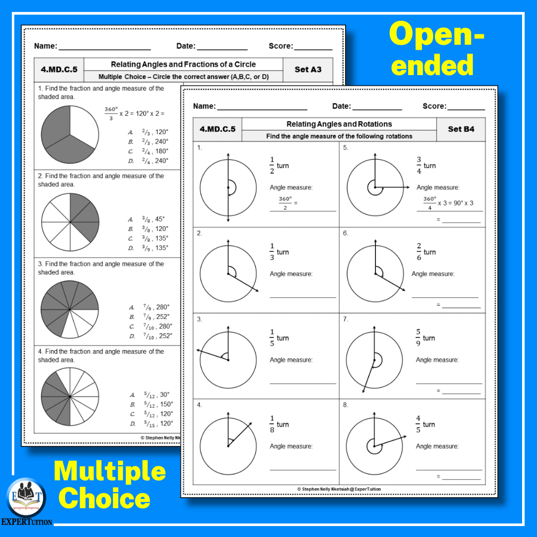 Are you teaching concepts of angle measurement? Practice or review relating angles, one-degree angles, rotations, and fractional parts of a circle with these differentiated worksheets. The worksheets can be used for morning work, homework, warm-ups, and more.