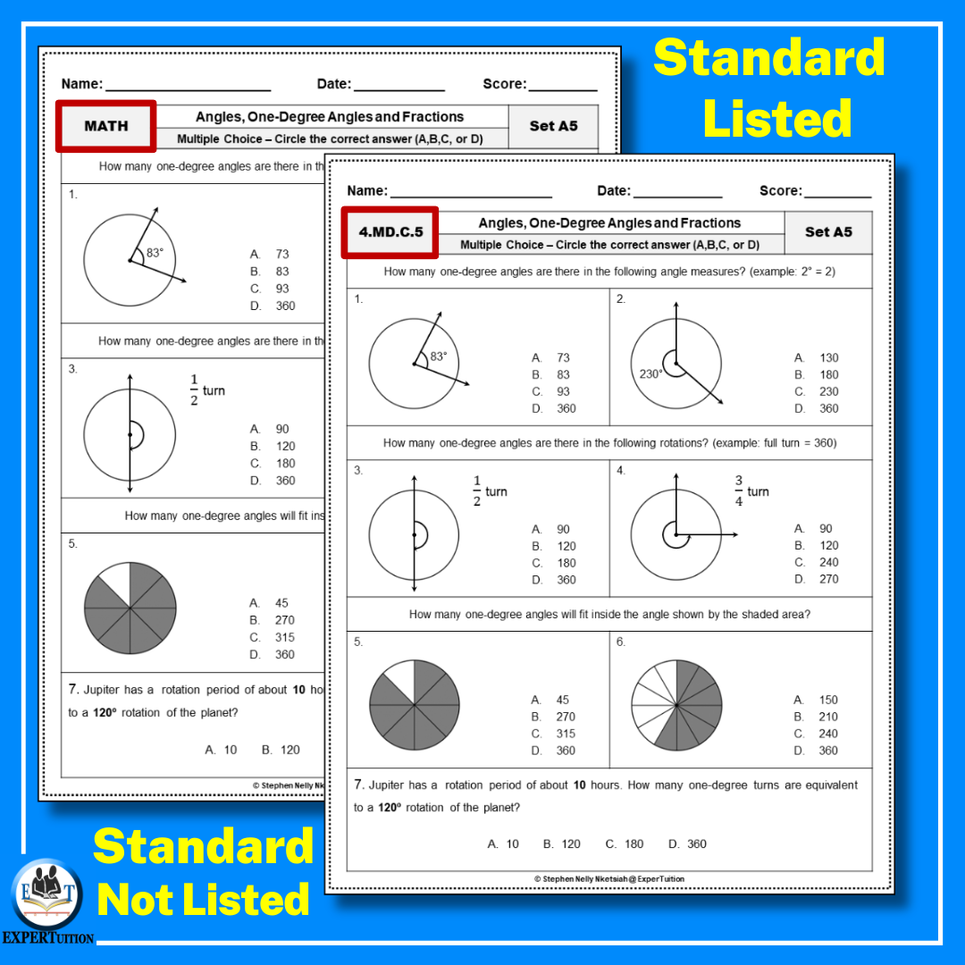 ☑️ 12 worksheets with 4.MD.C.5 standard listed